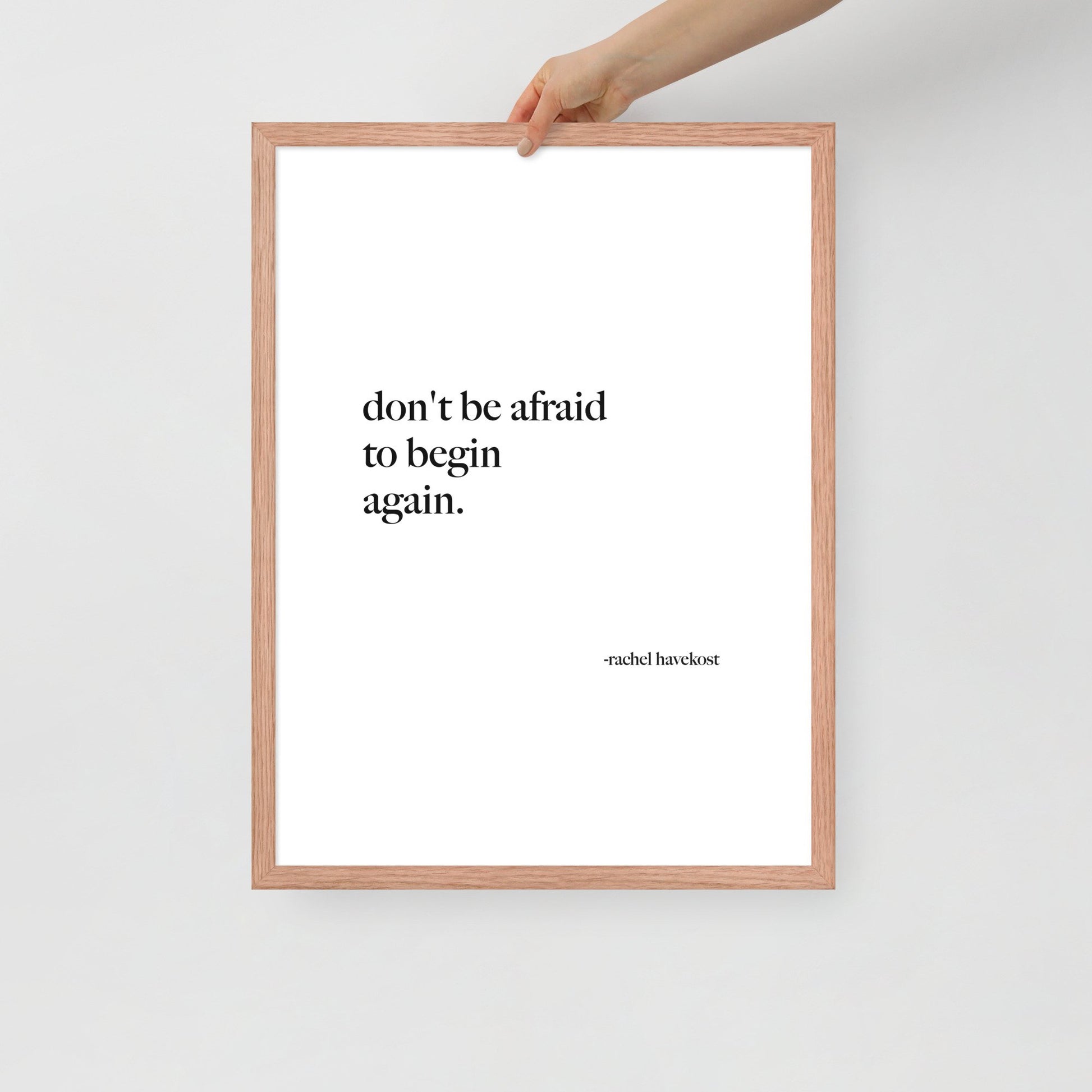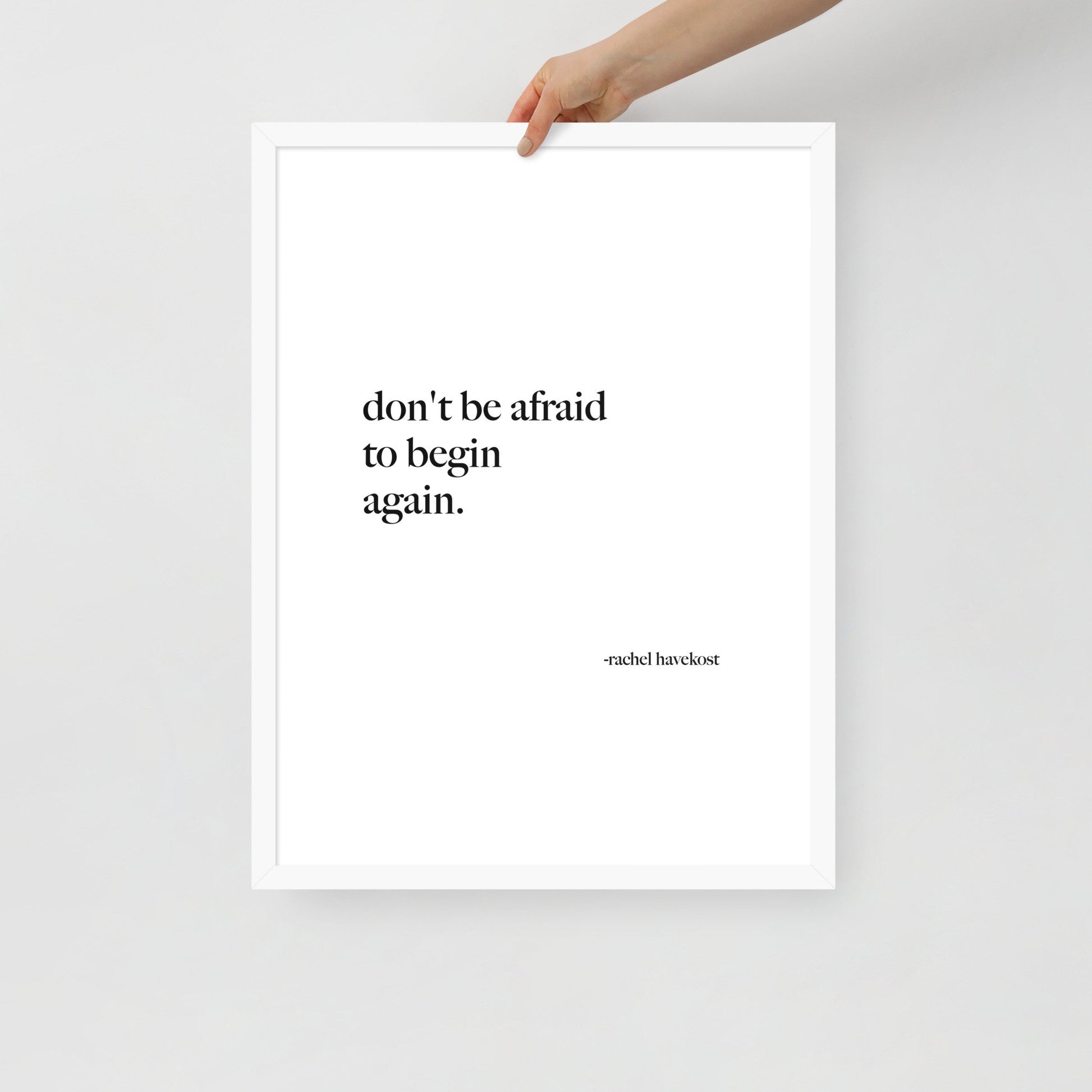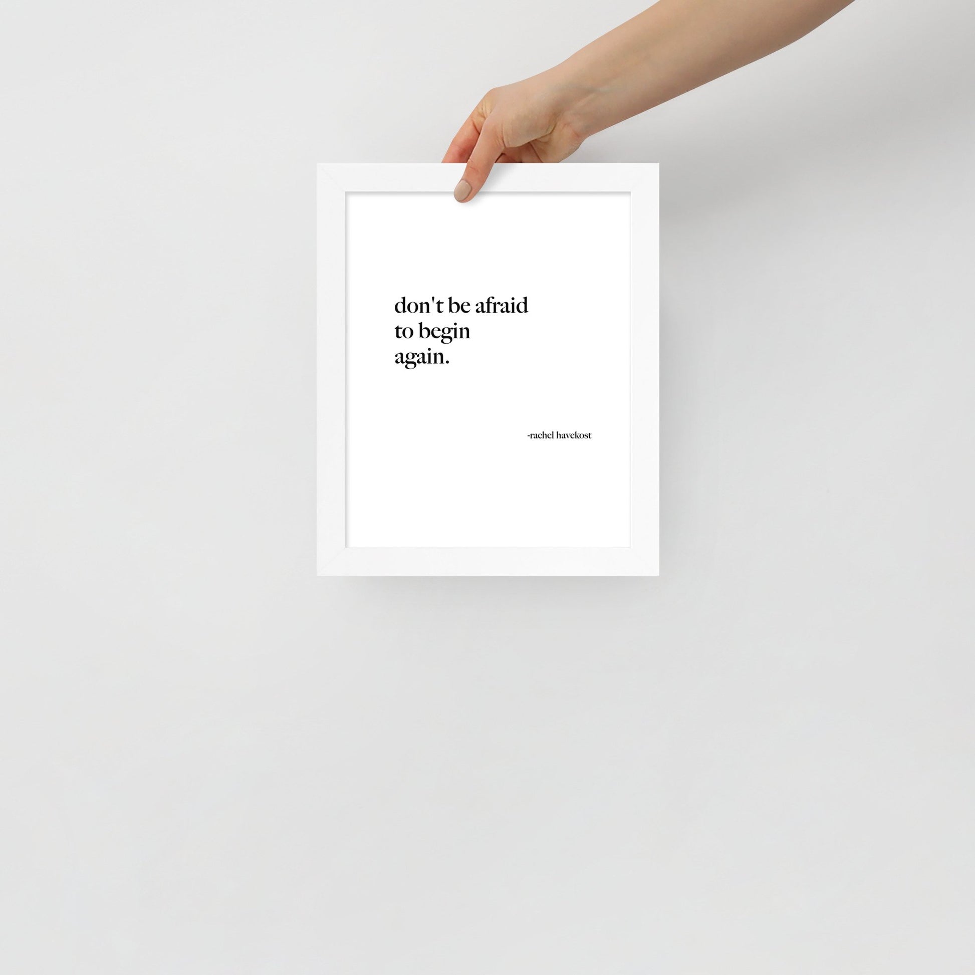 "Don't be afraid to begin again." Print and frame both included.