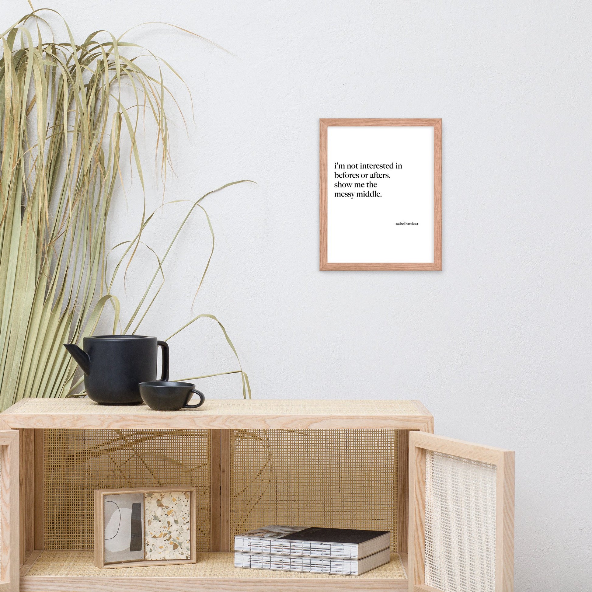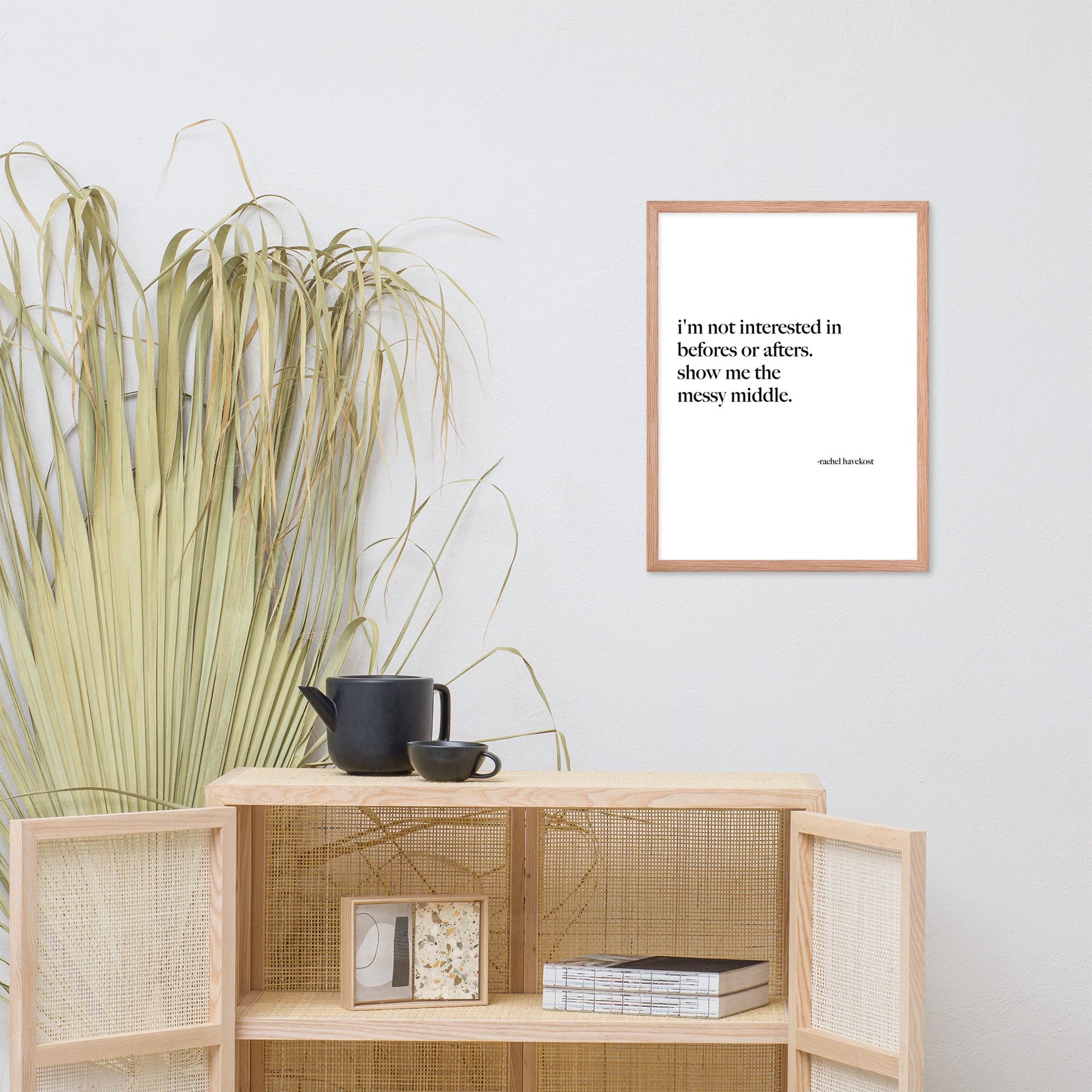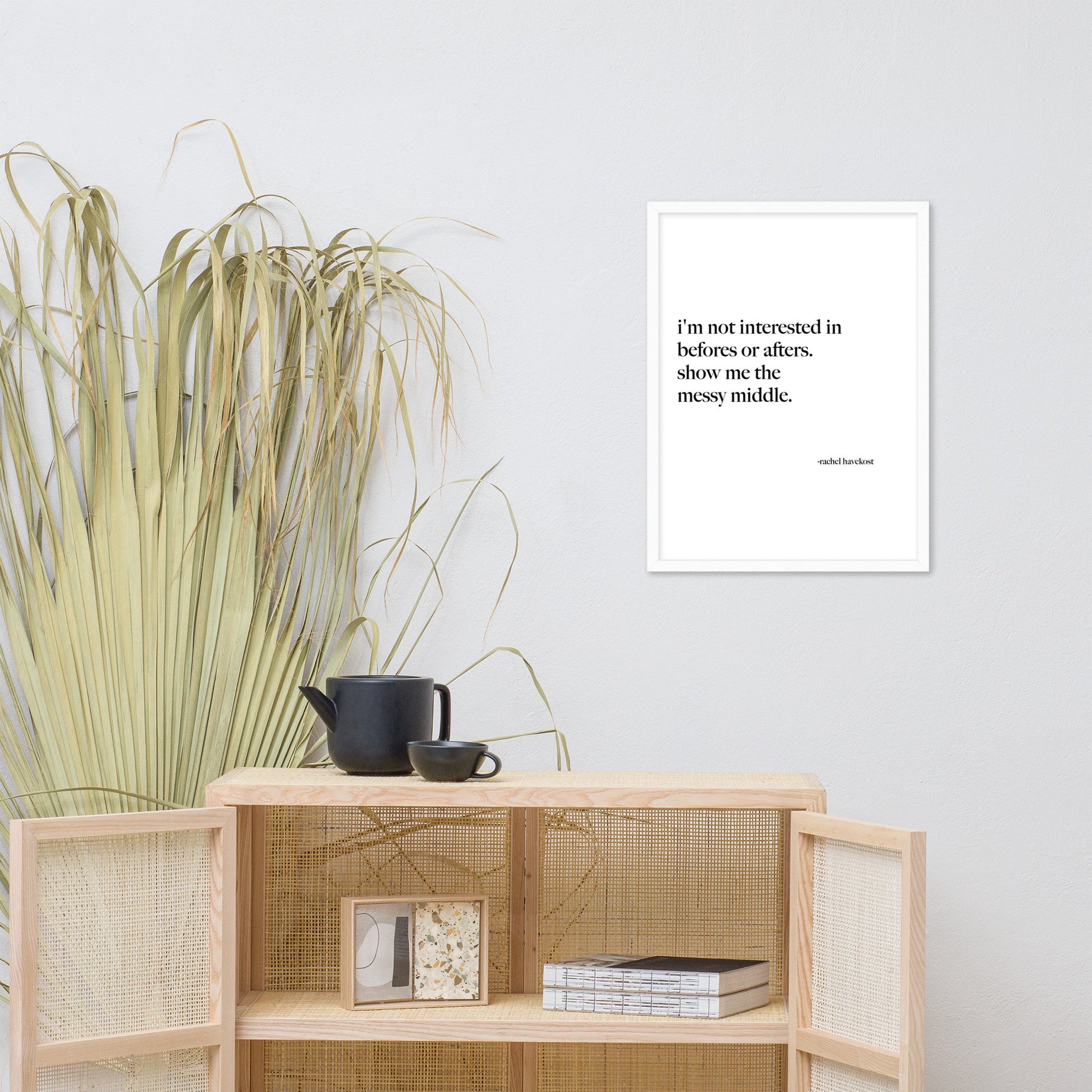 "I'm not interested in befores or afters. Show me the messy middle." Print and frame included.